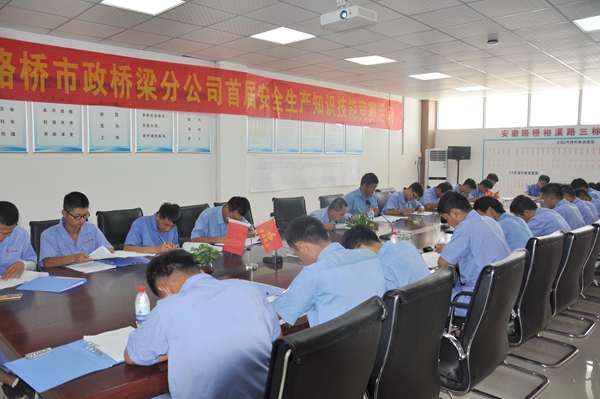 7月23日下午,市政分公司“識(shí)隱患、辨風(fēng)險(xiǎn)、保安全、促生產(chǎn)”首屆安全生產(chǎn)知識(shí)技能交流競(jìng)賽在裕溪路高架三標(biāo)項(xiàng)目成功舉辦。來(lái)自分公司所屬項(xiàng)目33名分部分項(xiàng)工程師、安全員參加本次交流競(jìng)賽活動(dòng),分公司經(jīng)理王明禮、總工程師張玉明、公司安全生產(chǎn)部王勇等到場(chǎng)指導(dǎo)。