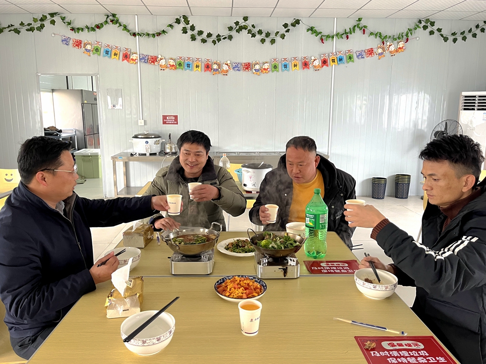 徐淮阜高速(亳州段)路基02標(biāo)項(xiàng)目組織值班留守人員一起貼春聯(lián)、掛福字、看春晚,共度龍年春節(jié),把“家”的歸屬與幸福凝聚在陪伴與祝福中。