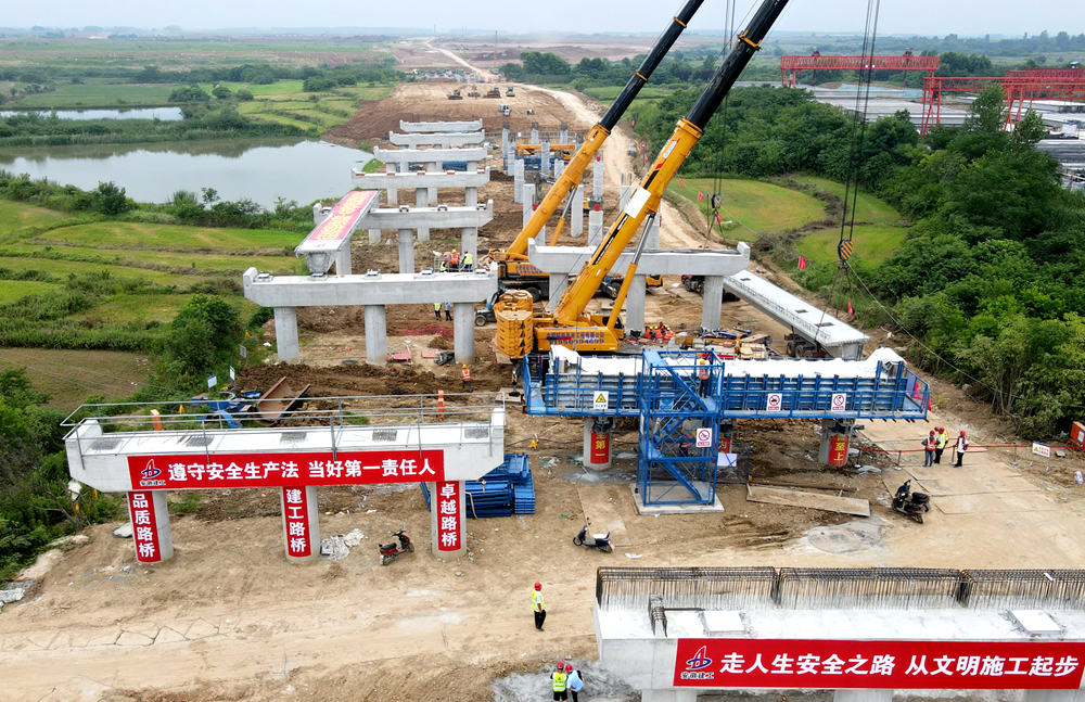 【路橋“競”行時】淮桐高速合肥段全線首片預(yù)制箱梁成功架設(shè)