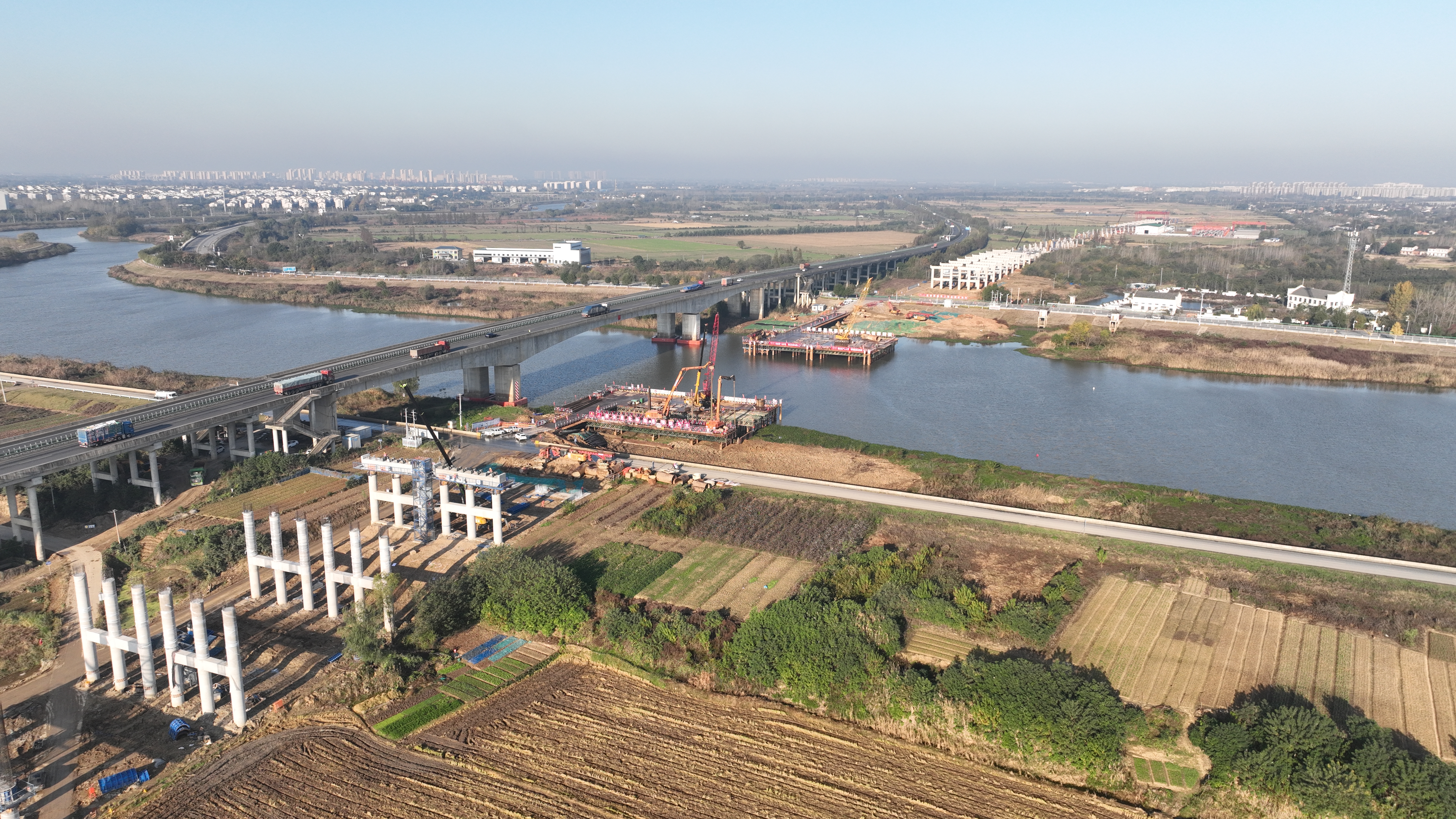 多線并進,全域發(fā)力,繪就建設(shè)“發(fā)展實景圖”。蒙城北路項目堅持多點同步、工序銜接模式,橋梁工程樁基完成率達92%,跨S323、下陶路分離立交橋墩柱與蓋梁全部完工,預制箱梁吊裝提速推進;淮桐高速合肥段淠河總干渠鋼箱系桿拱大橋拱肋實現(xiàn)合龍,跨引江濟淮特大橋主橋薄壁墩順利封頂;巢黃高速02標細化施工策劃,推進節(jié)奏穩(wěn)健高效。與此同時,包河區(qū)BH202426號地塊開發(fā)項目聚焦“好房子”建設(shè),多樓棟結(jié)構(gòu)施工有序提速;人工智能產(chǎn)業(yè)園主體封頂,二次結(jié)構(gòu)全面完成,裝飾裝修、機電安裝同步提速。