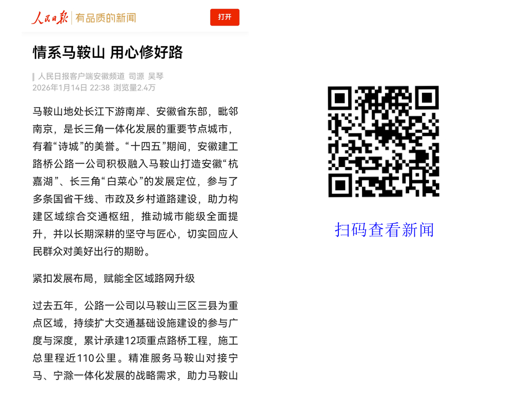 【名媒聚焦】人民日?qǐng)?bào)客戶端:回眸“十四五”丨安徽建工路橋公路一公司:情系馬鞍山 用心修好路