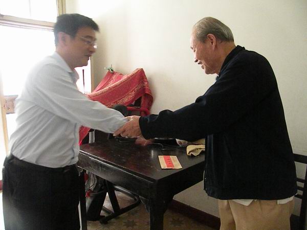 三節(jié)前公司領導到困難老職工家慰問 發(fā)布時間:2009年09月28日 來源:公司黨辦 發(fā)布人: 作者: 瀏覽:4449次 公司黨委積極開展“我們的節(jié)日·中秋”主題活動,組織在國慶、中秋、重陽三節(jié)前夕看望慰問困難老職工,讓他們共享改革開放的成果,為新中國成立60周年營造一個安定、文明、和諧的社會環(huán)境。9月21日至24日,公司總經理、黨委副書記汪衛(wèi)東、副總經理孫學軍等領導先后看望慰問困難老職工代表,給他們送去了節(jié)日的祝福,并帶去慰問金。