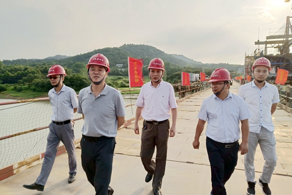 7月31日,集團(tuán)公司黨委委員、副總經(jīng)理、總工程師戴良軍、總工辦副主任崔林釗一行深入公司萬佛湖02標(biāo)項目指導(dǎo)工作,公司黨委委員、副總經(jīng)理、總工程師彭申凱陪同。