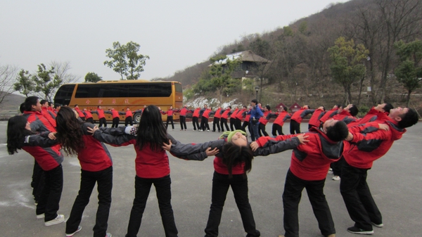 4日一大早,在凜冽的寒風中,大家分成三個組,并起好各自的隊名:同心隊、利劍隊和團結(jié)隊。拓展訓練的項目共分為背摔、挑戰(zhàn)150、七巧板、極速60秒、驛站傳書、創(chuàng)意晚會、跨越斷橋、單杠8個項目。