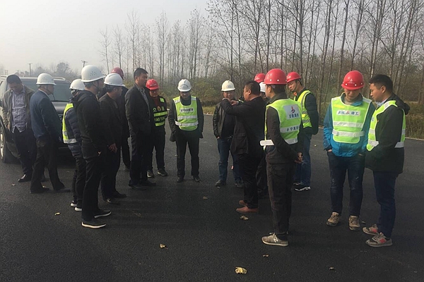 11月21日上午,合寧高速改擴建項目辦副主任劉祥勝帶領(lǐng)各監(jiān)理、施工單位到公司承建的合寧05標觀摩交流瀝青上面層施工技術(shù)。