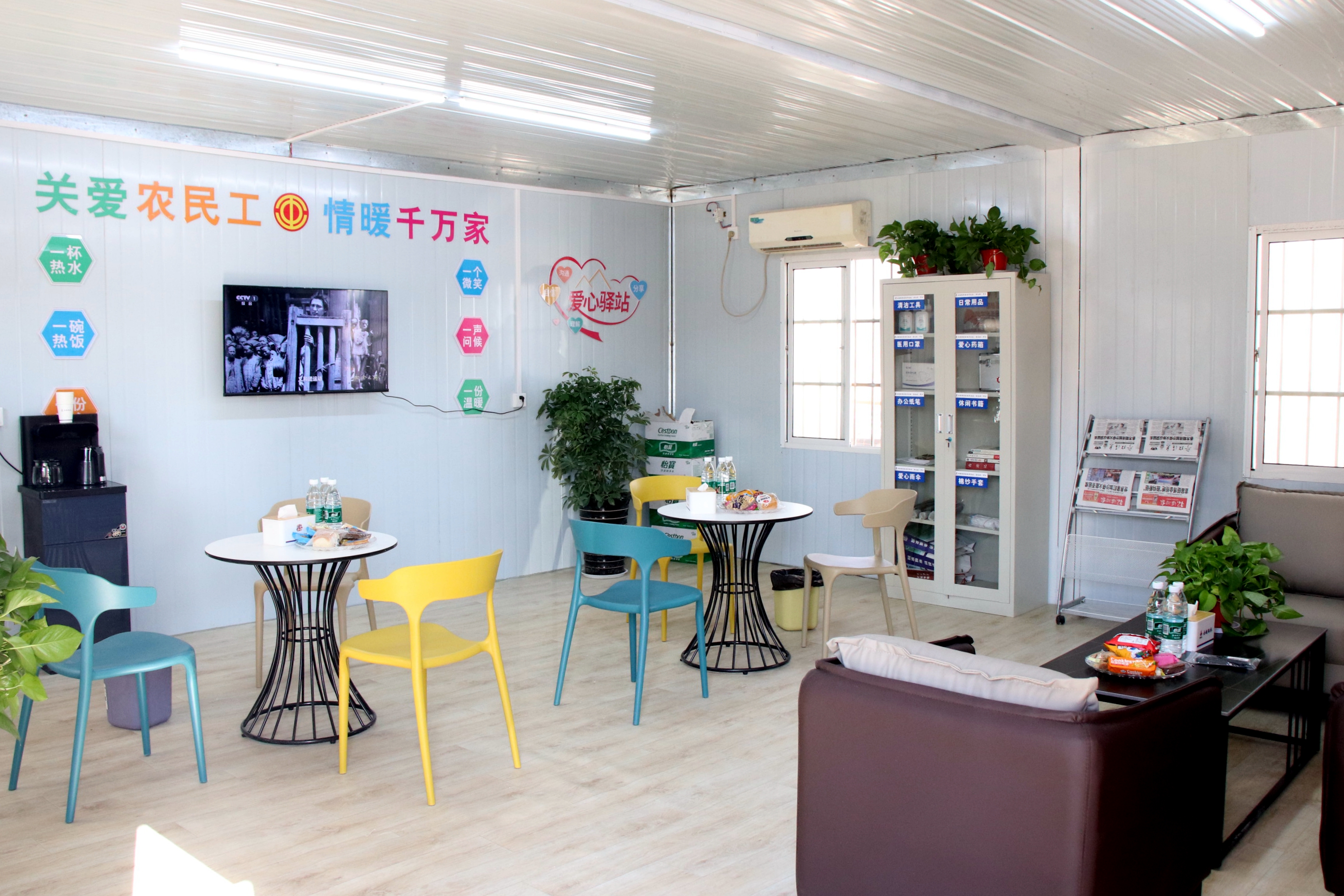 項(xiàng)目工會驛站自建立以來,始終秉持著“關(guān)愛戶外勞動者,打造幸??臻g”的宗旨,不斷完善設(shè)施配備、強(qiáng)化服務(wù)功能。工會驛站內(nèi)配備空調(diào)、電視、充電插座、飲水機(jī)等設(shè)施,急救醫(yī)藥箱、書籍報刊、愛心雨傘等一應(yīng)俱全,切實(shí)改善了戶外勞動者的工作休息條件,成為了項(xiàng)目勞動者的歇腳地、加油站、連心橋。