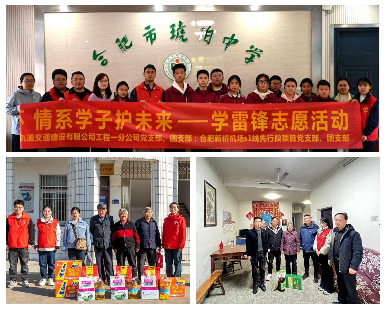 為弘揚(yáng)雷鋒精神,用行動(dòng)傳遞社會(huì)溫情,所屬各項(xiàng)目團(tuán)支部前往敬老院、學(xué)校等地開展慰問活動(dòng)。S334峨山路東延伸新建二期工程項(xiàng)目為周邊村莊貧困老人送去米、油等生活物資;合肥新橋機(jī)場S1線先行段項(xiàng)目走進(jìn)合肥市琥珀中學(xué)龍居山莊校區(qū)開展愛心捐贈(zèng)活動(dòng),為學(xué)校貧困學(xué)子捐贈(zèng)了嶄新校服;S22天天高速YQB2標(biāo)組織開展雷鋒月主題活動(dòng),走進(jìn)老黨員家中,與老黨員們親切交談,關(guān)切詢問他們的身體狀況和生活情況,聆聽他們講述過去的奮斗故事。
