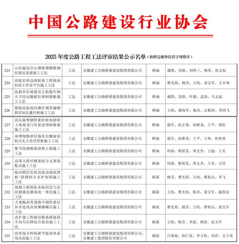 近日,中國公路建設行業(yè)協(xié)會公布了2025年度公路工程工法評審結果,公司共有13項工法成功獲批,創(chuàng)歷年新高。
