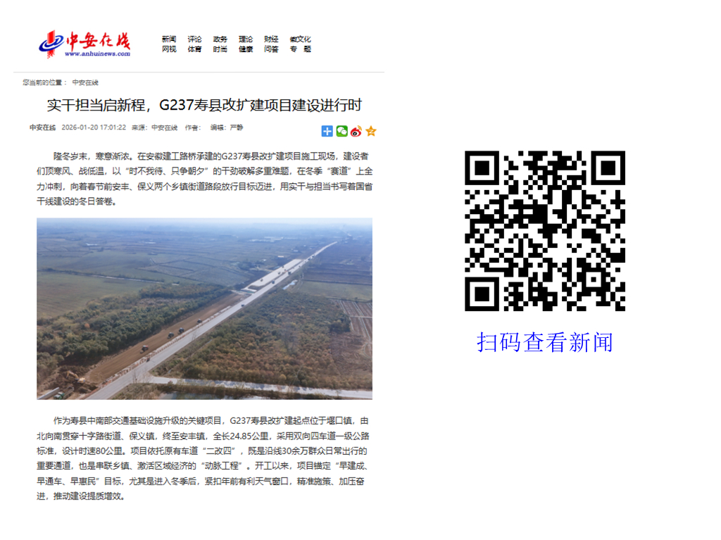 【名媒聚焦】安徽日?qǐng)?bào)、中安在線(xiàn):實(shí)干擔(dān)當(dāng)啟新程,G237壽縣改擴(kuò)建項(xiàng)目建設(shè)進(jìn)行時(shí)