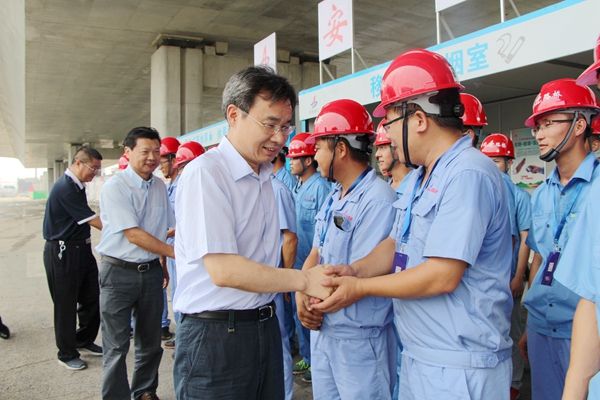 連日以來(lái),高溫酷暑籠罩著江淮大地,但廣大安徽路橋人依然堅(jiān)守施工一線,揮汗如雨。7月26日上午11時(shí),安徽省住建廳黨組書記、廳長(zhǎng)張?zhí)炫?,黨組成員、副廳長(zhǎng)吳桂和,副巡視員劉少為一行在集團(tuán)工會(huì)主席徐曉光,公司董事長(zhǎng)、黨委書記、總經(jīng)理孫學(xué)軍等有關(guān)人員的陪同下,深入合肥阜陽(yáng)北路高架項(xiàng)目看望慰問(wèn)一線建設(shè)者,叮囑項(xiàng)目部做好防暑降溫工作,切實(shí)保障職工身心健康。